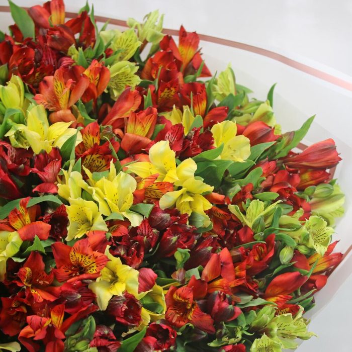 Букет из 51 альстромерии яркий микс в упаковке