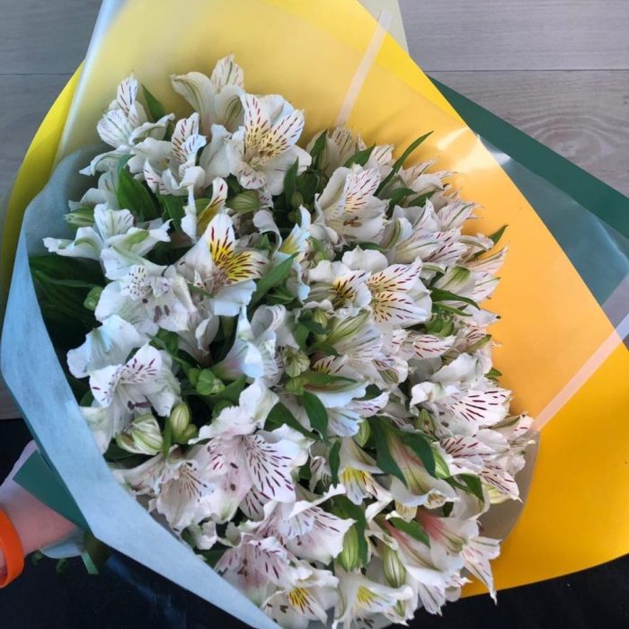Альстромерия – 11 шт.Упаковка дизайнерская – 1 шт.Лента атласная – 1 шт.