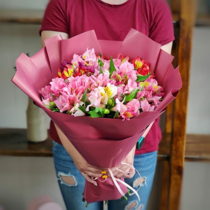 Альстромерия – 17 шт. Лента – 1 шт. Современная упаковка – 1 шт.