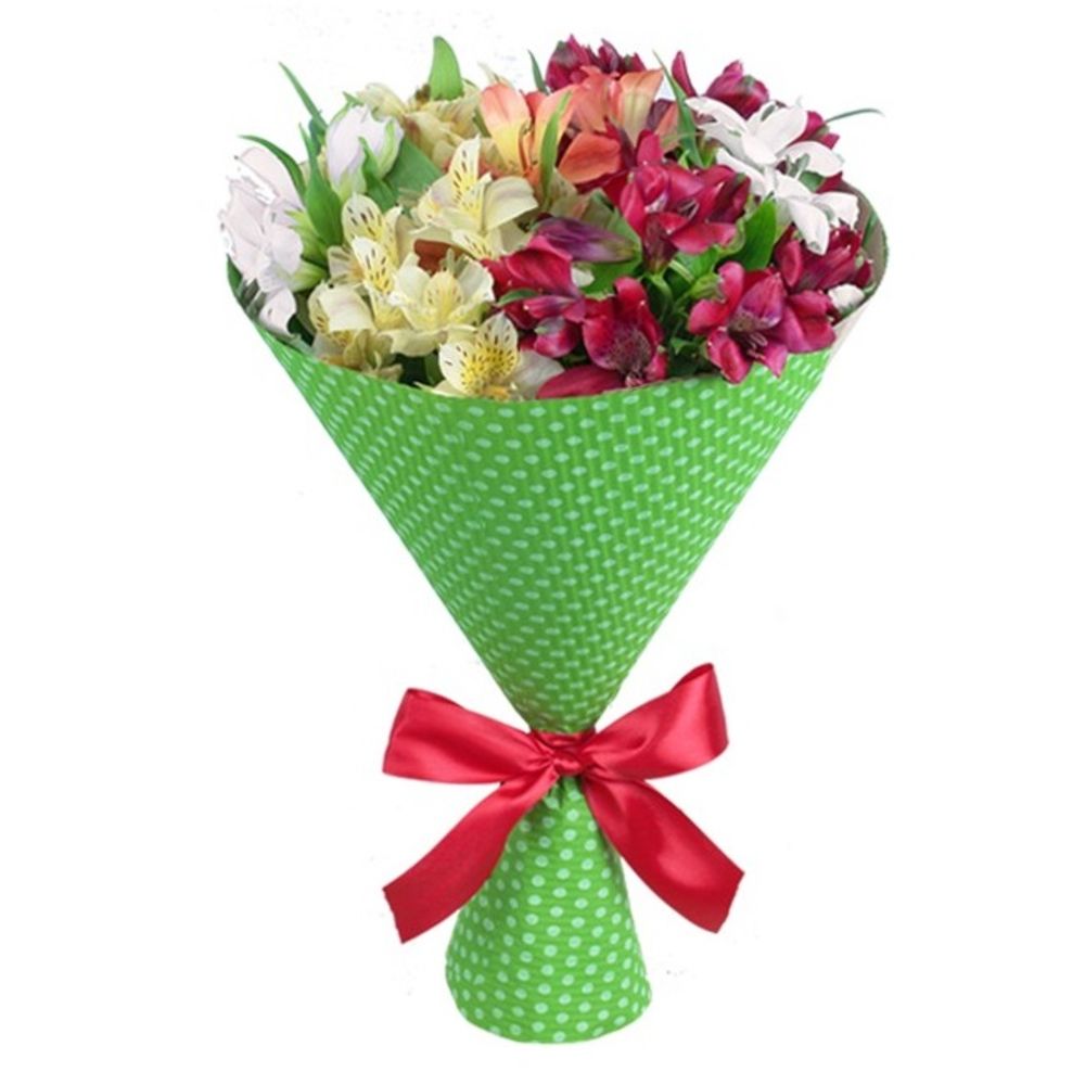 лента декоративная – 1 шт.бумага упаковочная – 1 шт.Альстромерия оранжевая – 1 шт.Альстромерия розовая – 2 шт.Альстромерия малиновая – 2 шт.Альстромерия белая – 2 шт.