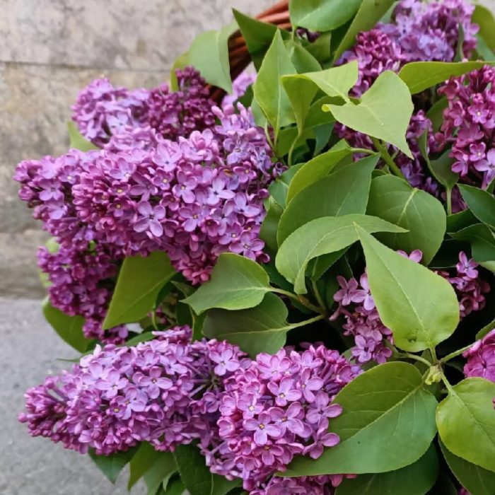 Сирень – 11 шт.Лента атласная – 1 шт.Корзина плетеная – 1 шт.Пленка матовая – 1 шт.Оазис флористический – 2 шт.