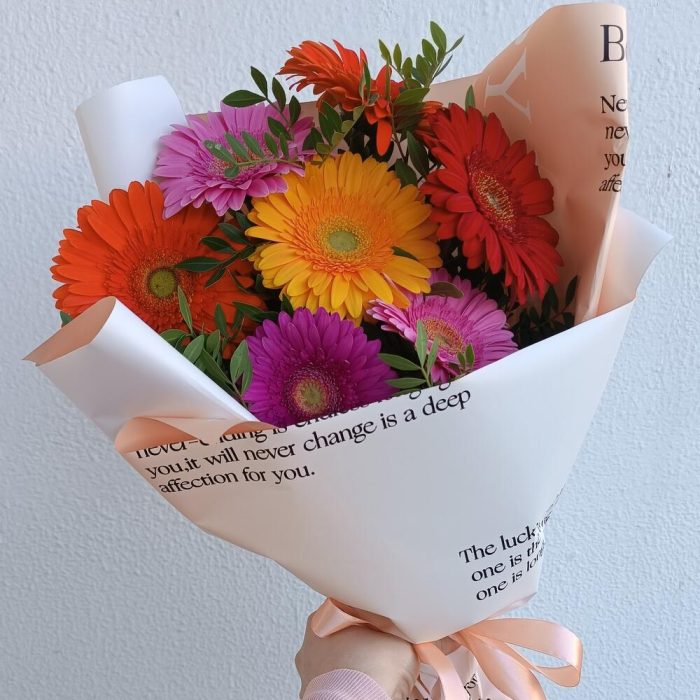 Весёлый микс ярких гербер подарит прекрасное настроение и море позитивных эмоций