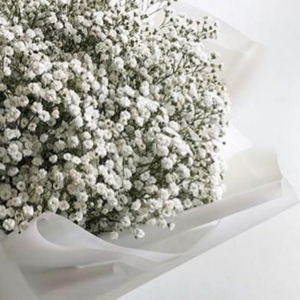 Гипсофила – 9 шт.Упаковка дизайнерская – 3 шт.Лента атласная – 2 шт.