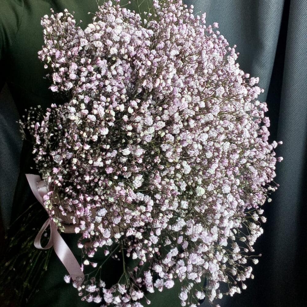 Гипсофила – 25 шт.Лента атласная – 1 шт.Пакет подарочный – 1 шт.