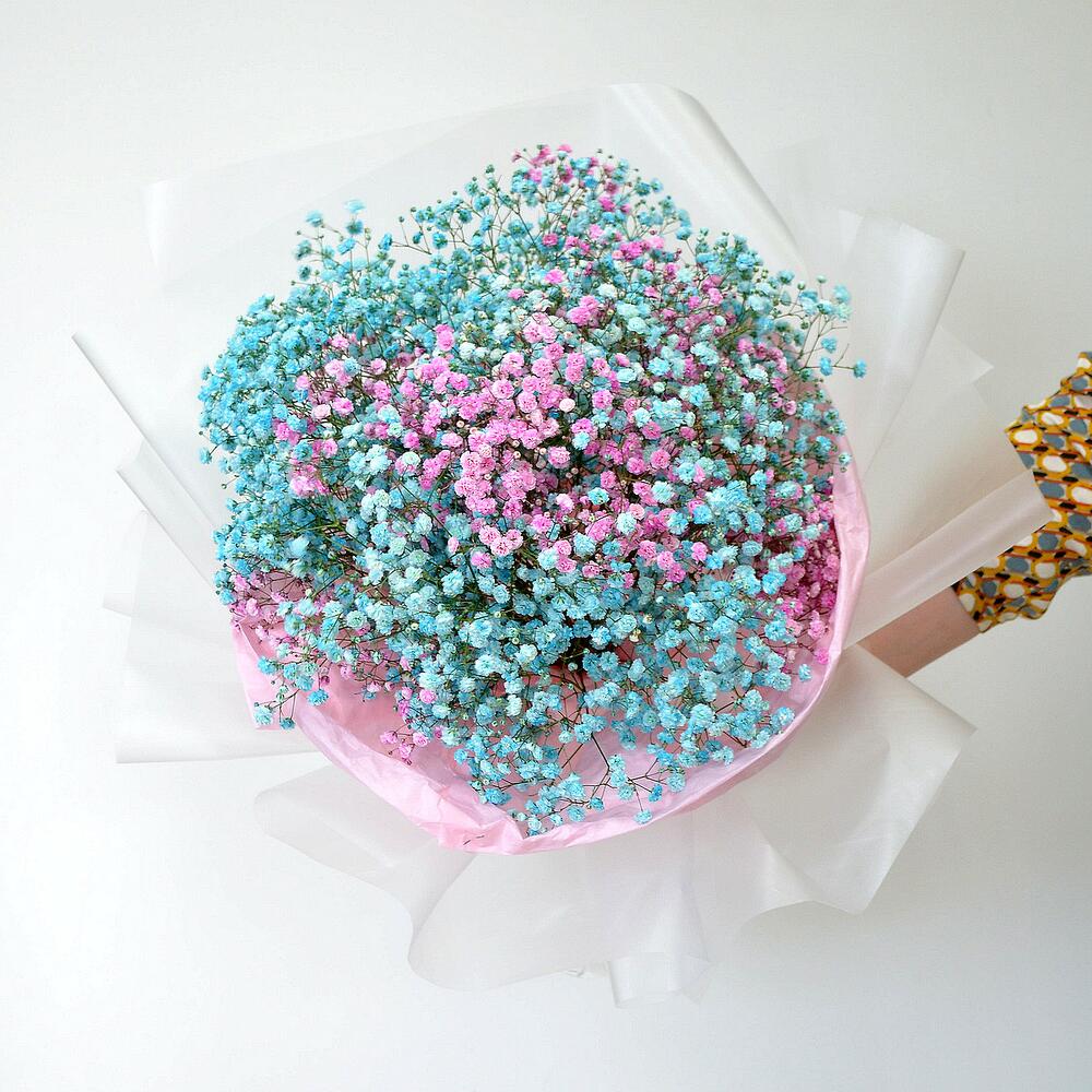 Букет гипсофилы цветной в оригинальной упаковке