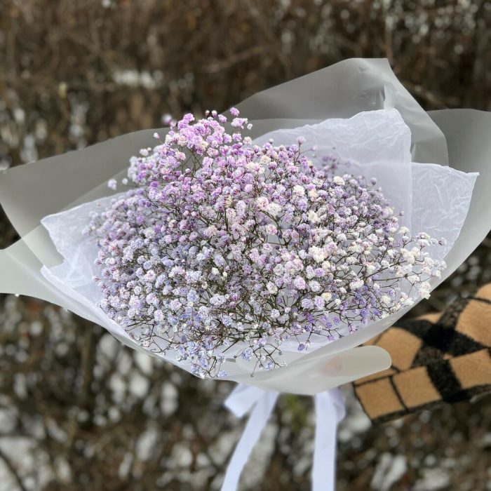 “Сиреневый туман” – композиция из гипсофилы в шляпной коробке