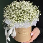 “Сиреневый туман” – композиция из гипсофилы в шляпной коробке