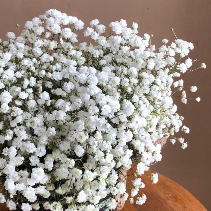 Гипсофила – 7 шт.Корзина плетеная – 1 шт.