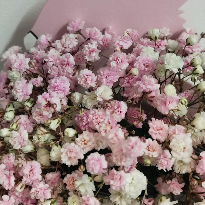 Оазис флористический – 1 шт.гипсофила розовая и белая – 4 шт.ящик “зайка розовый” – 1 шт.