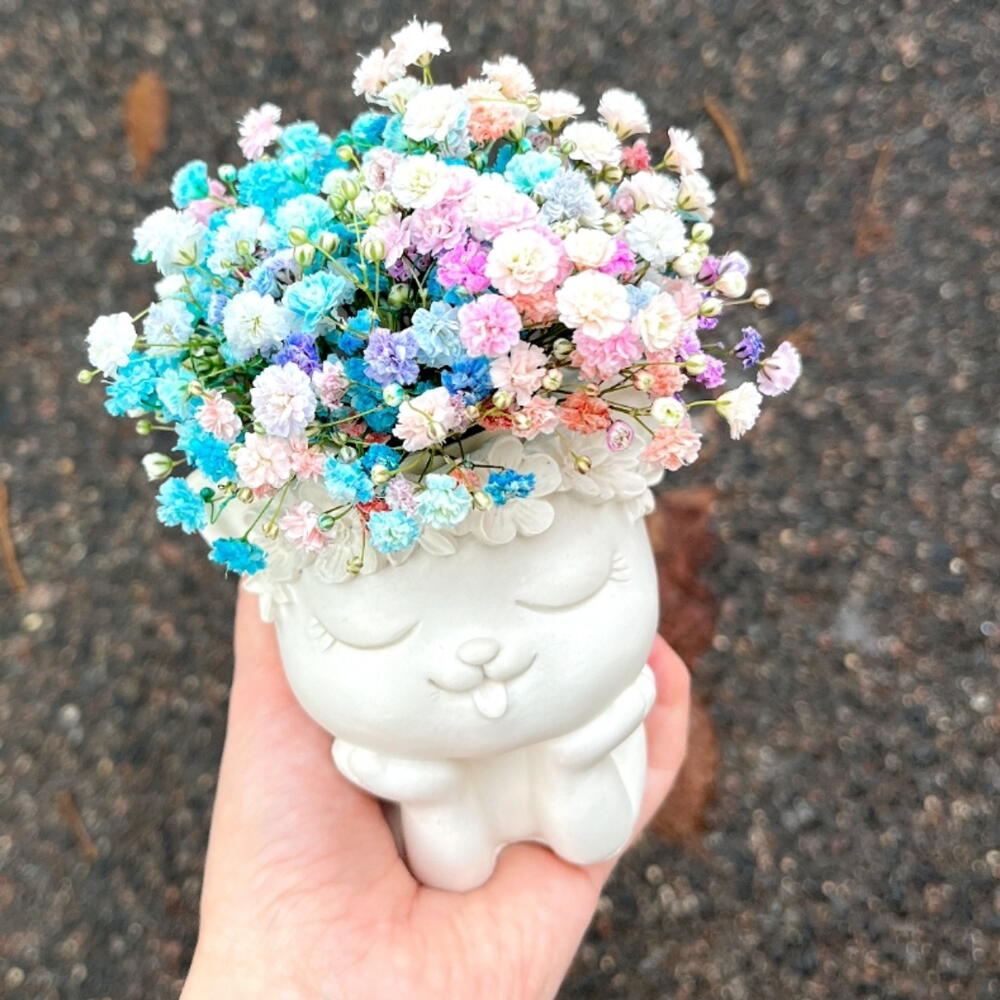 Кому подарить такую милоту?) Это кашпо с разноцветной гипсофилой станет оригинальным подарком для вашей близкой подруги или девушки, сестры или мамы.