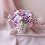 Радужная гипсофила с лагусусом в кашпо из керамики