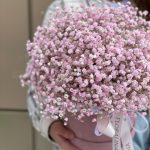 “Сиреневый туман” – композиция из гипсофилы в шляпной коробке