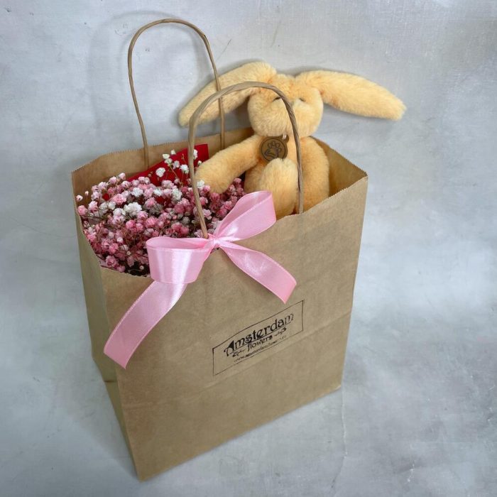 Гипсофила – 3 шт.Упаковка – 1 шт.Пакет крафт – 1 шт.игрушка зайчонок lapkin – 1 шт.