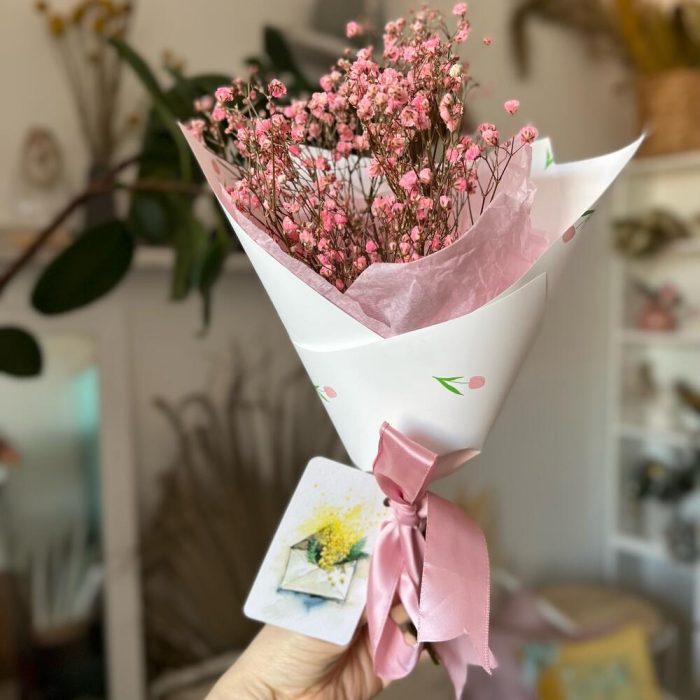 Стабилизированная розовая гипсофила в весенней упаковке