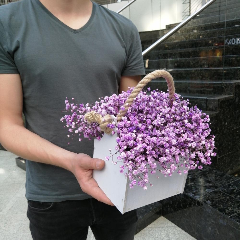 Гипсофила Мирабелла 95 г – 15 шт.Ящик деревянный – 1 шт.Оазис флористический – 1 шт.