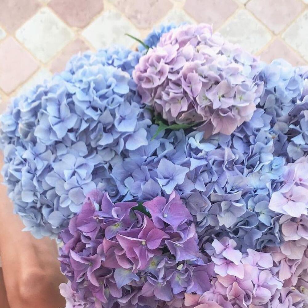 Букет из голубых и фиолетовых гортензий