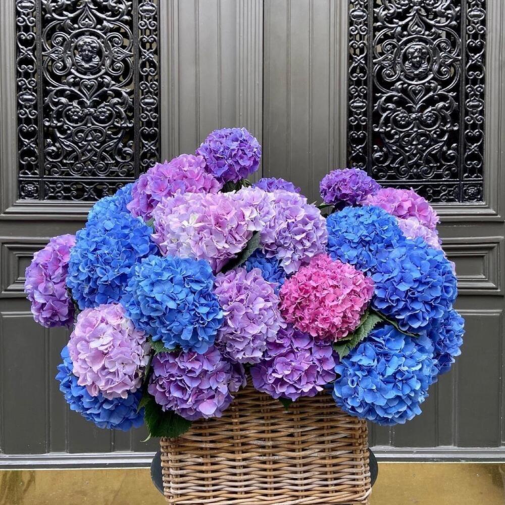 Корзина с 29 яркими гортензиями