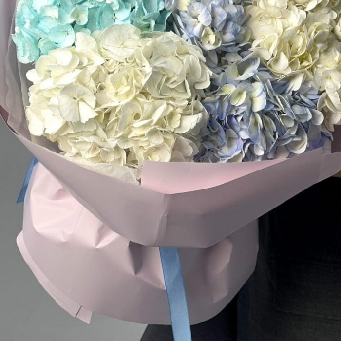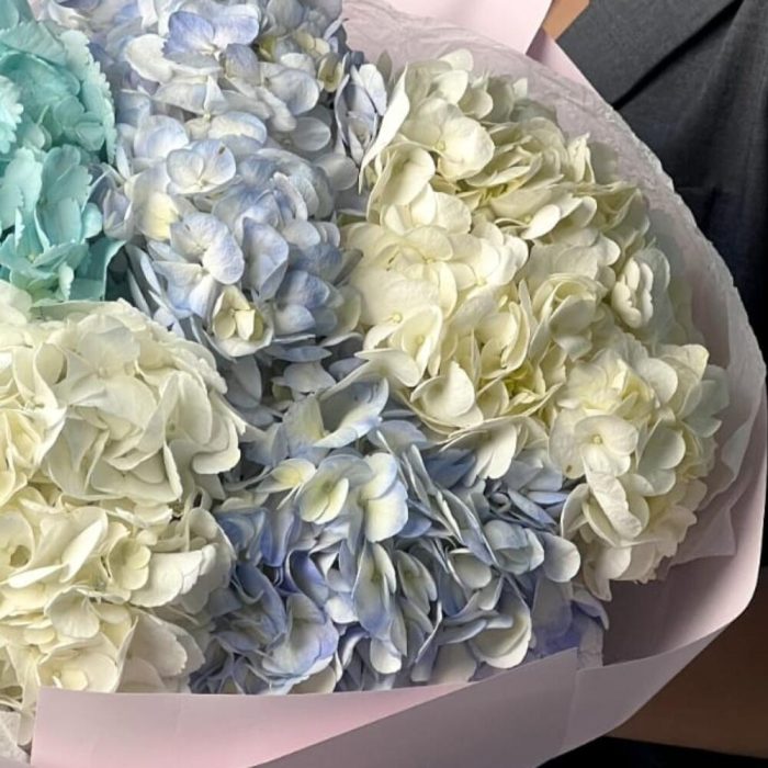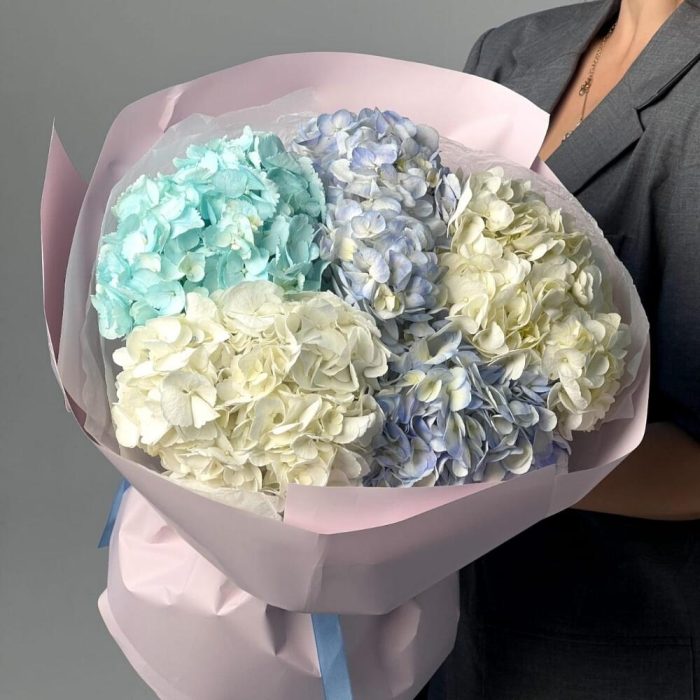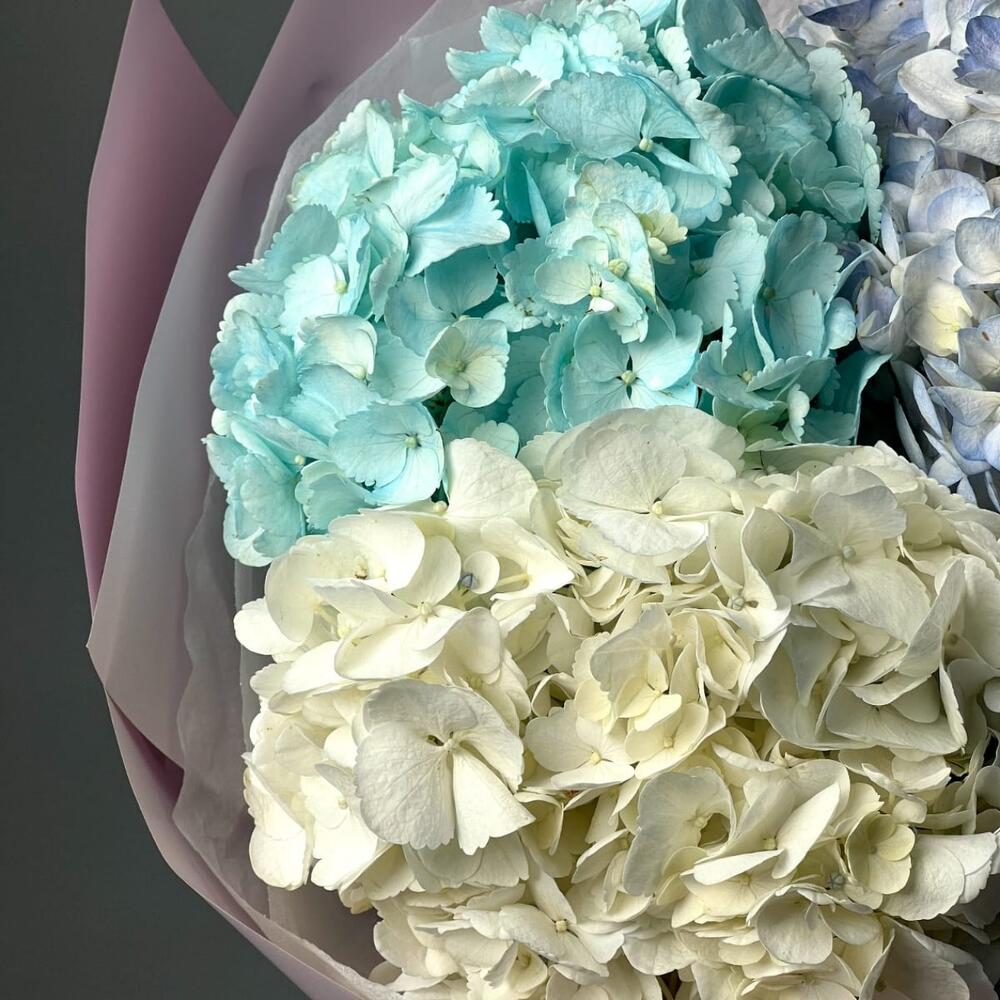 Ароматный букет с гортензией, матиоллой и лизиантусом
