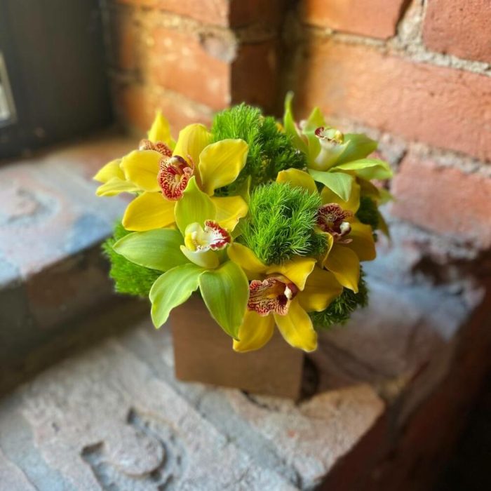 ЦИМБИДИУМ – 11 шт.Диантус – 6 шт.Оазис – 1 шт.Ящик – 1 шт.