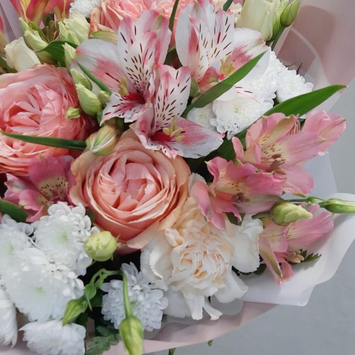 Категории: АльстромерииРозы, Гвоздики, Лизиантусы, Пионовидные розы
