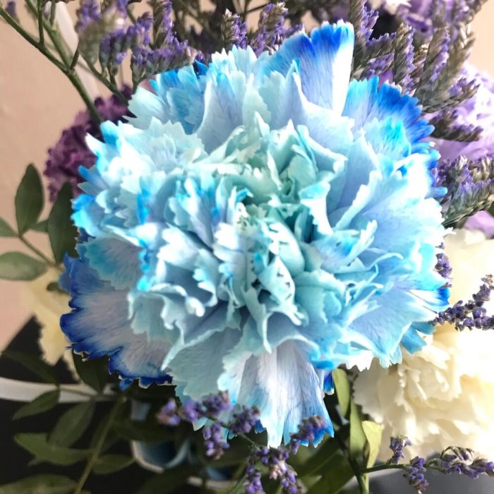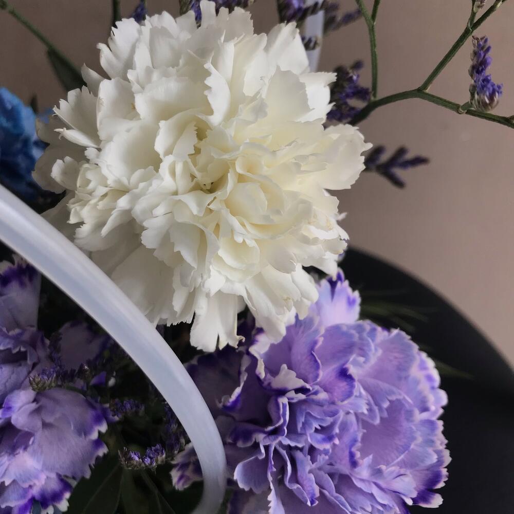 «Лавандовое созвездие» Букет из розы, гвоздики, статица и хлопка