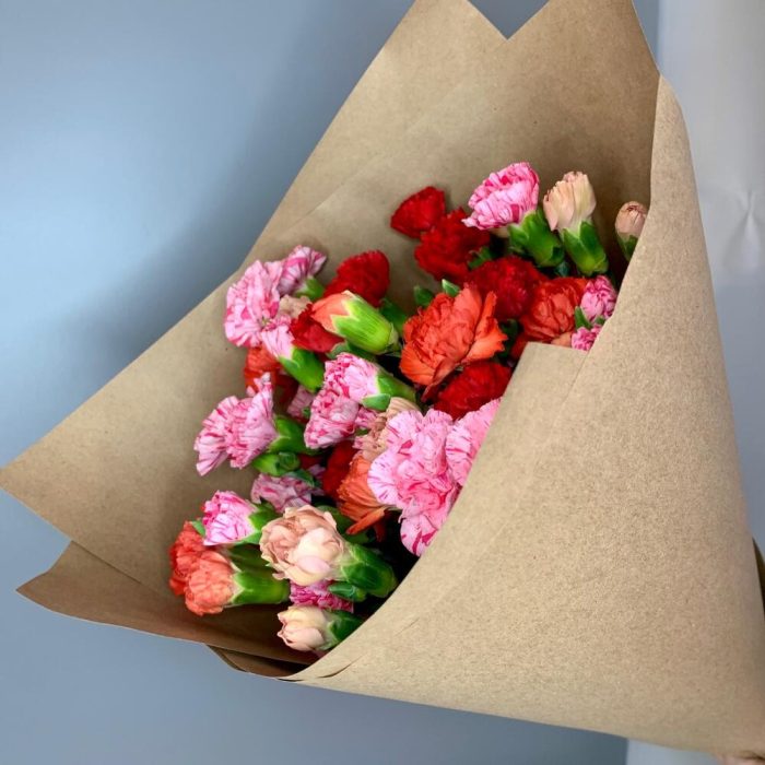 Лента атласная – 2 шт.Крафт – 2 шт.Диантус кустовой – 23 шт.
