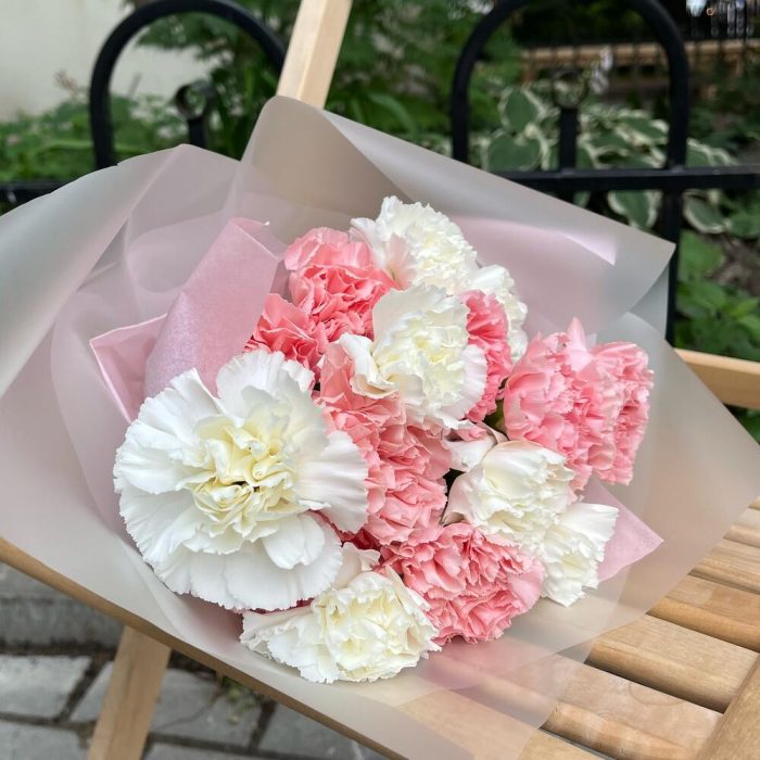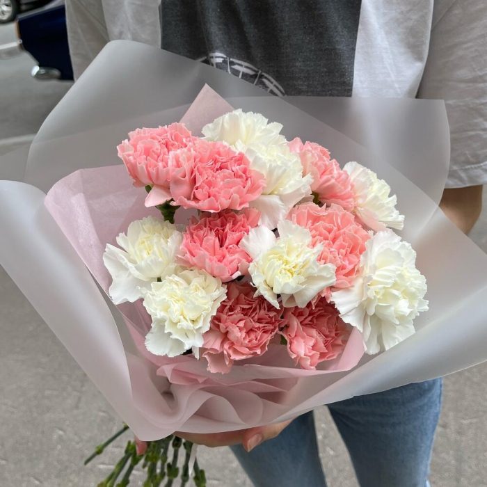 Монобукет с розовыми и белыми диантусами