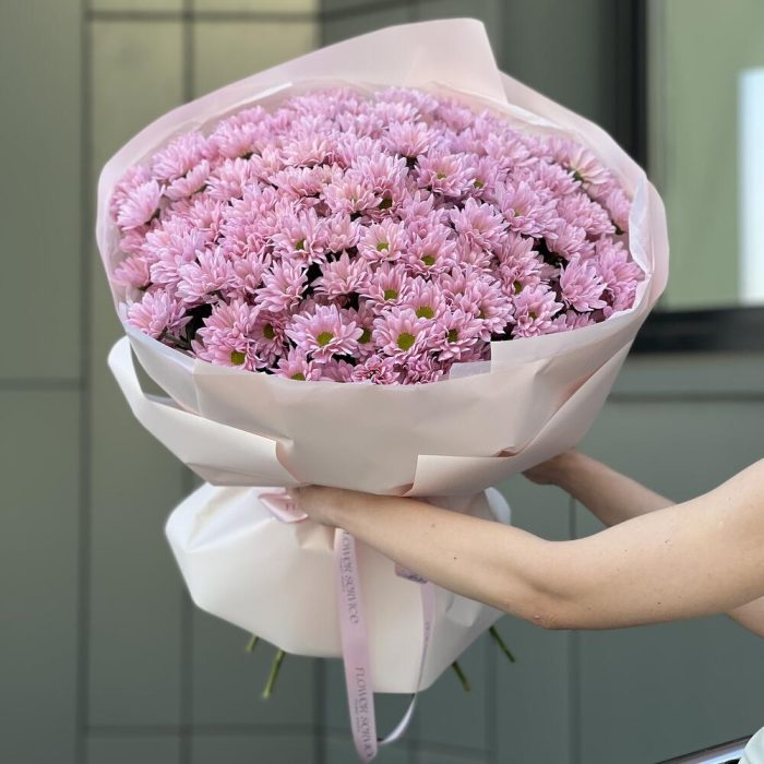 Букет из 25 веток нежно розовой хризантемы в оформлении!