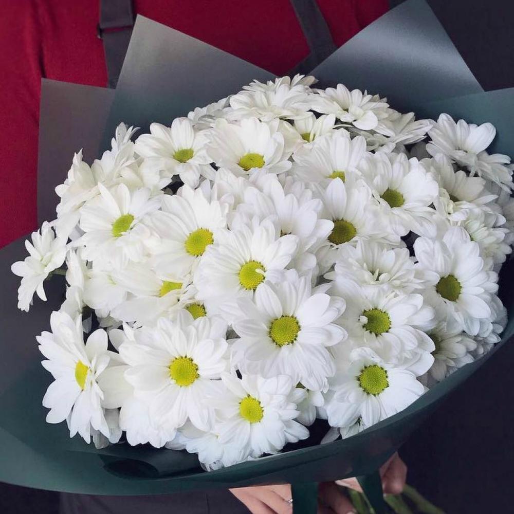 Хризантема кустовая – 9 шт.Лента атласная – 1 шт.Упаковка дизайнерская – 3 шт.