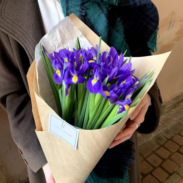 Крафтовая упаковка – 1 шт.ирисы синие – 15 шт.