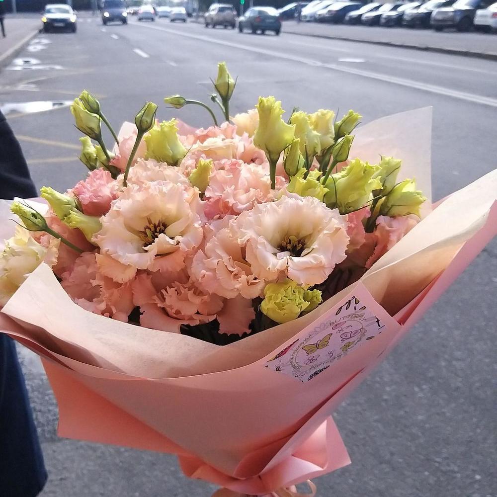эустома персиковая – 15 шт.Упаковка дизайнерская – 2 шт.
