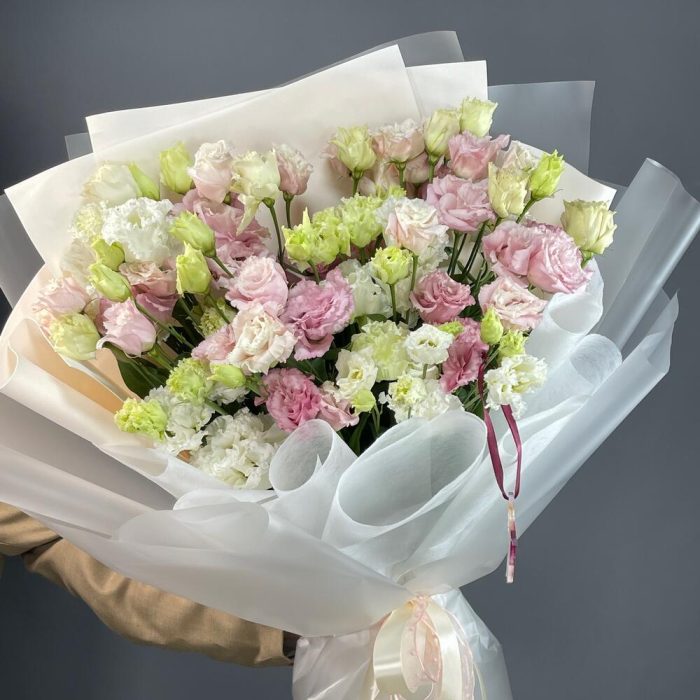 Лента – 2 шт.Лизиантус – 15 шт.Упаковка дизайнерская – 2 шт.