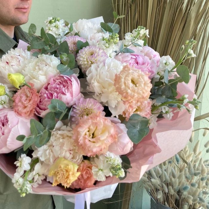 Букет с пионами и душистой маттиолой