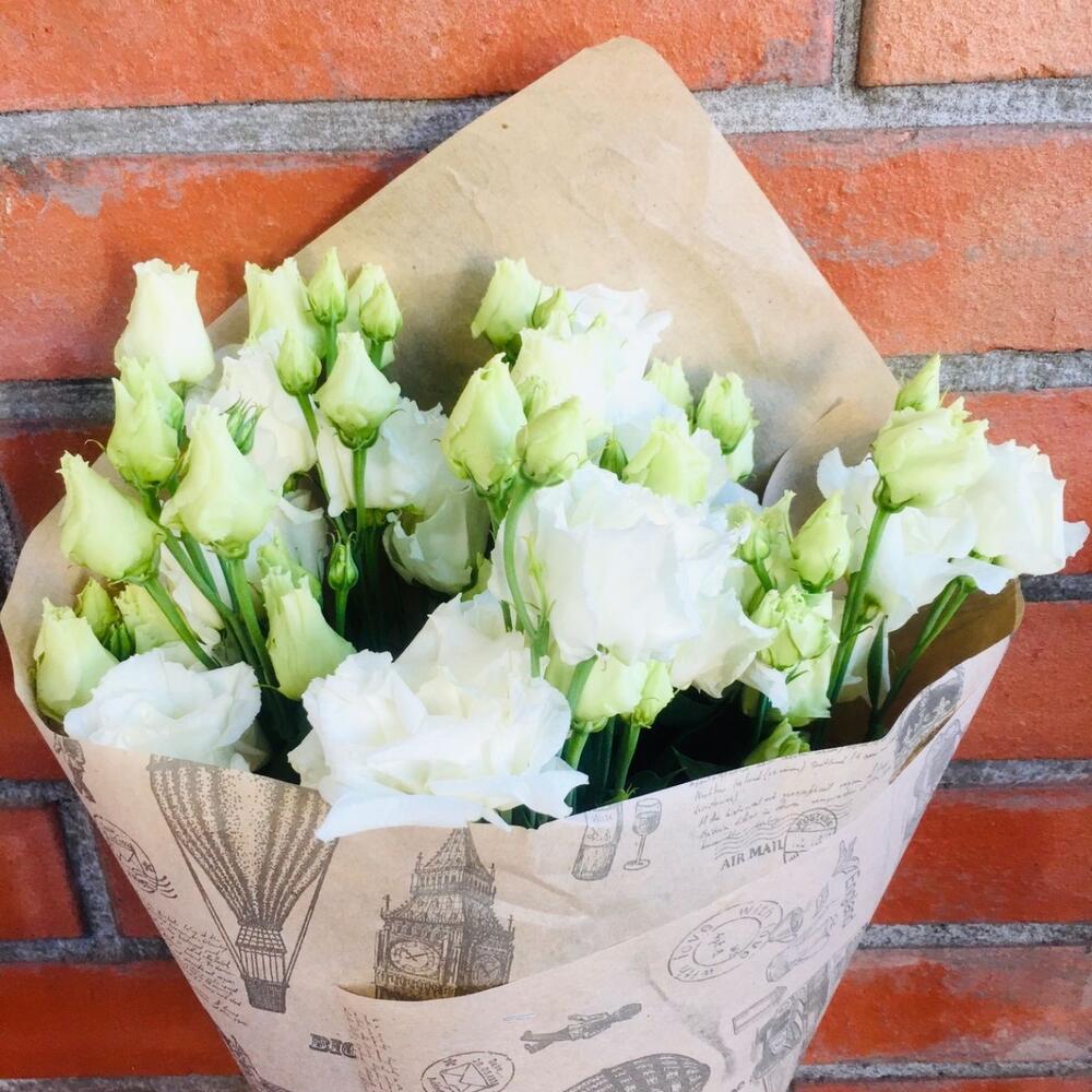 Крафт упаковка – 1 шт.Лизиантус Алиса белый – 5 шт.