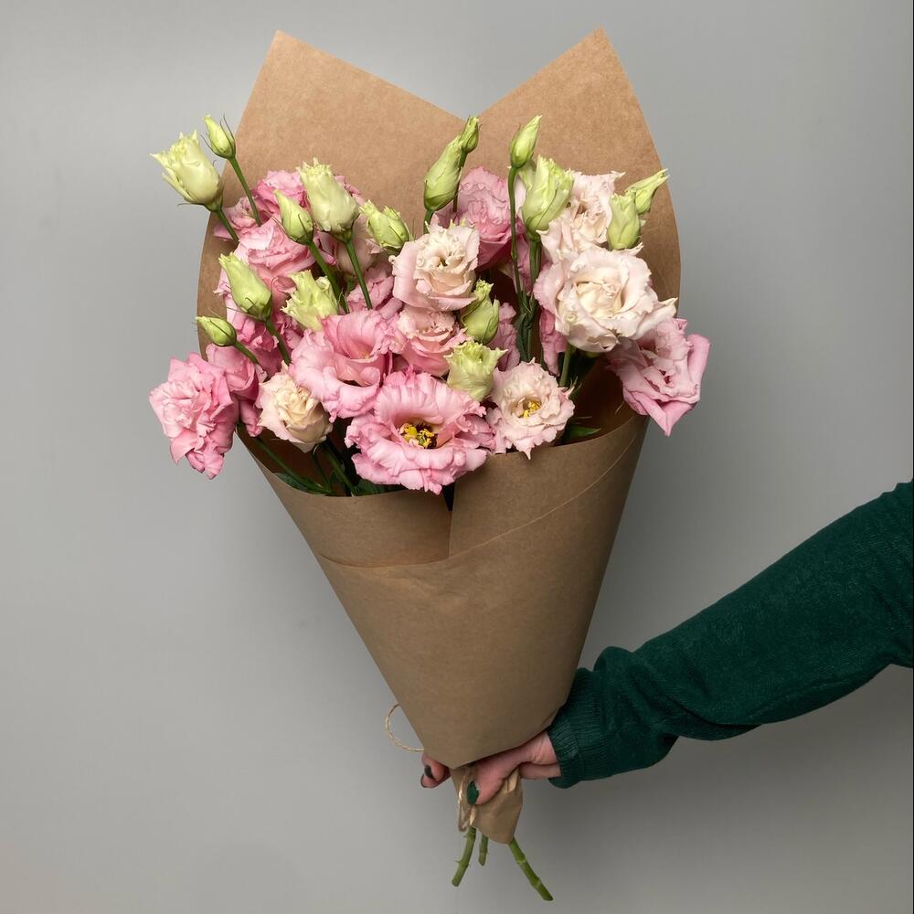 Розовая эустома в крафте