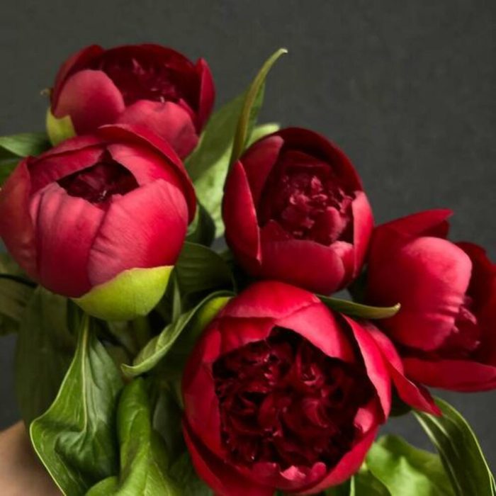 Атласная лента – 1 шт.пионы red charm – 5 шт.