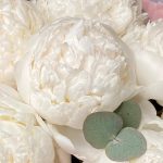 Лента атласная – 1 шт.Тишью – 4 шт.Упаковка дизайнерская – 1 шт.Эвкалипт пучок – 1 шт.пион белый премиум крупный бутон – 7 шт.