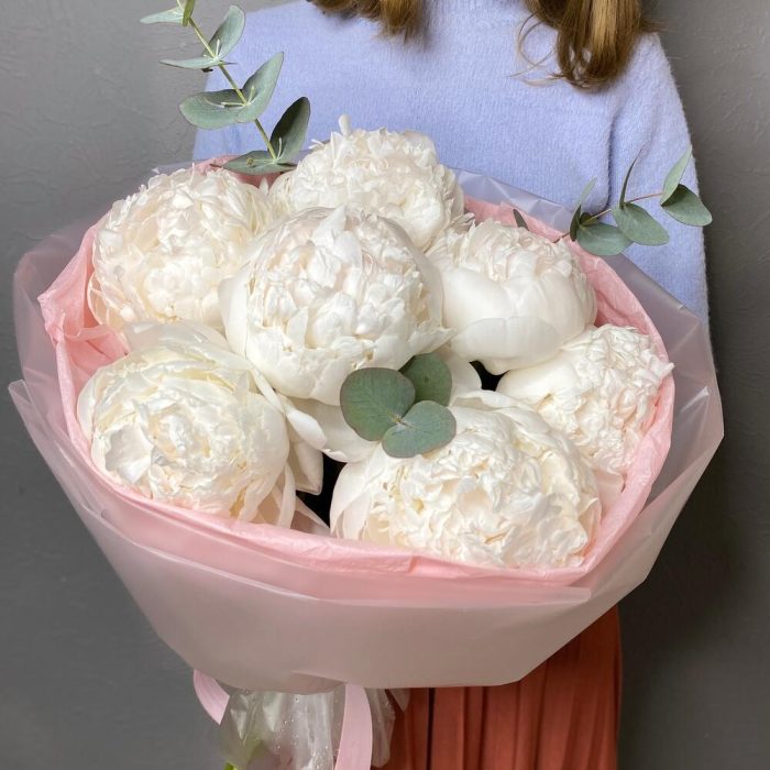 Букет «Пионы белые» моно 7 шт