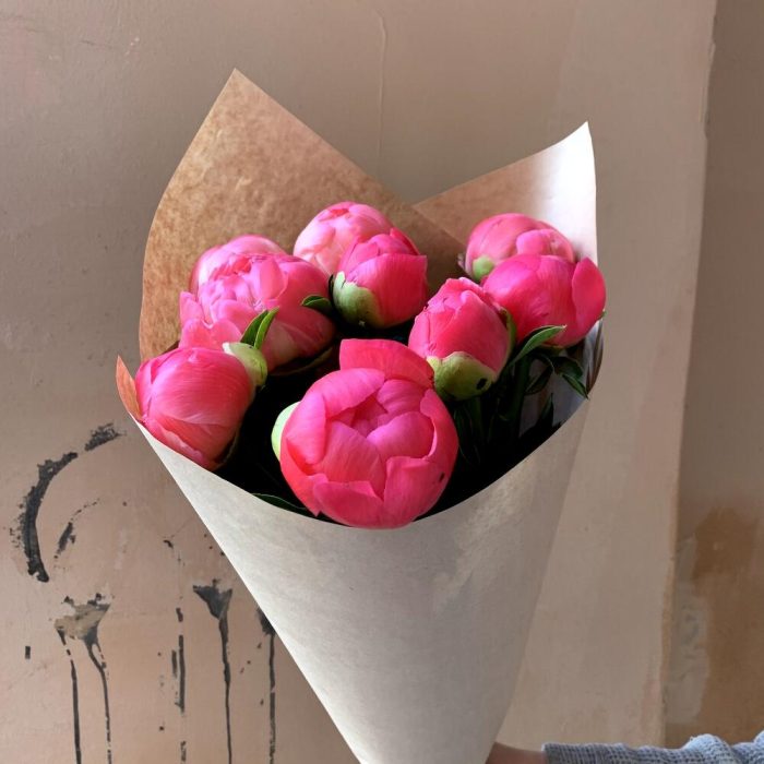 Крафтовая упаковка – 1 шт.пион коралловый Коралл шарм – 9 шт.