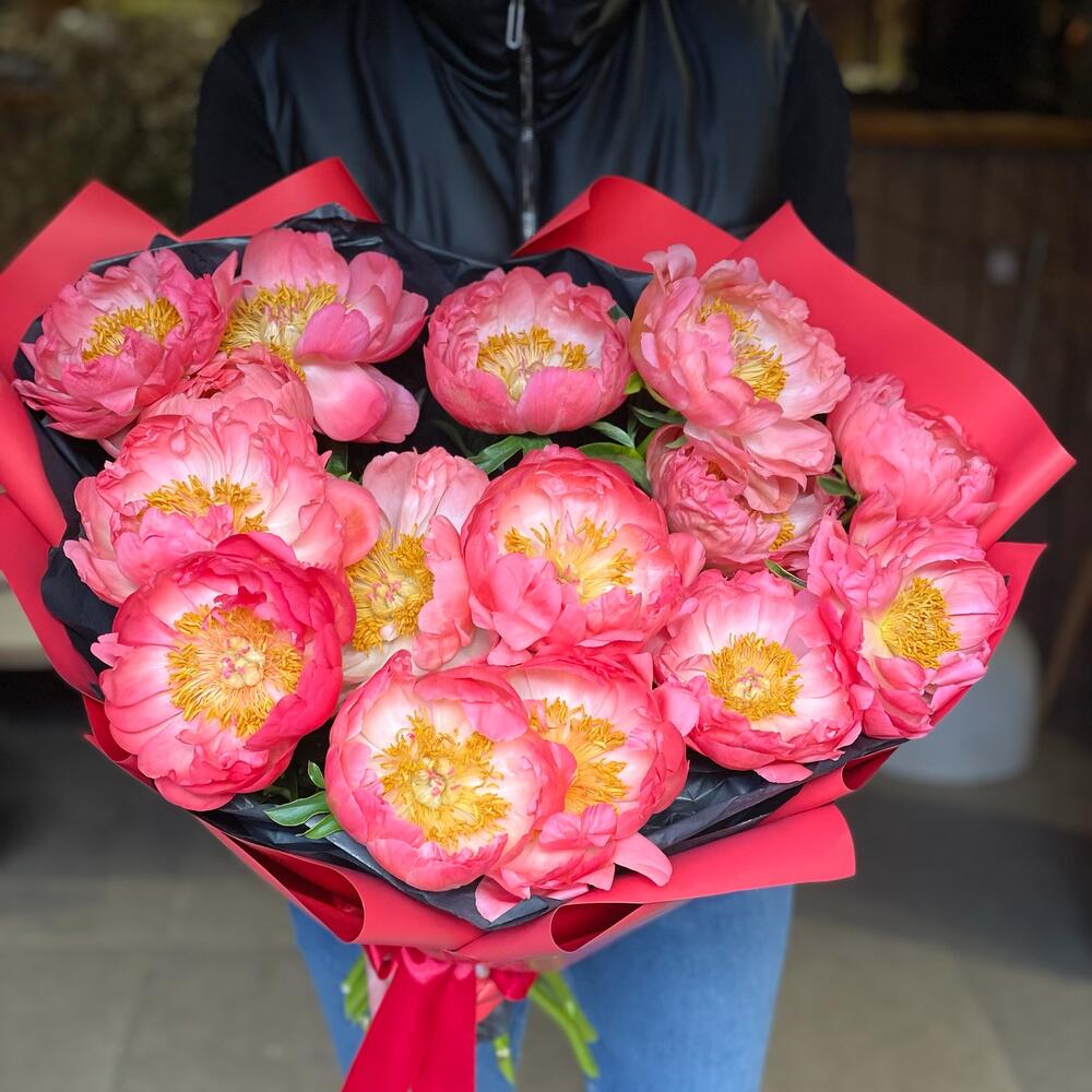 Упаковка дизайнерская – 1 шт.Коралл шарм пионы – 13 шт.