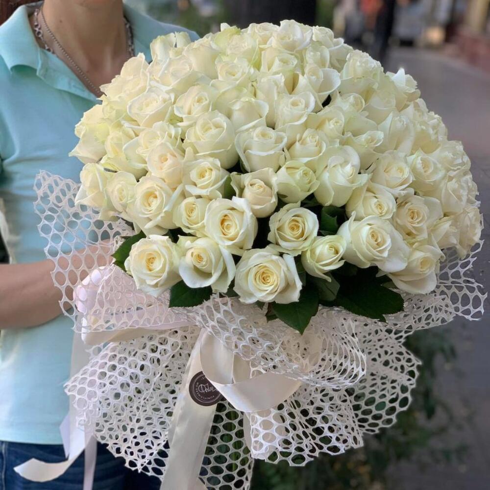 51 белая роза 60 сантиметров