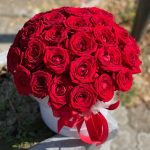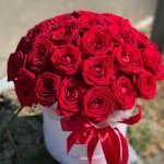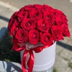 Шляпная коробка 55 алых роз