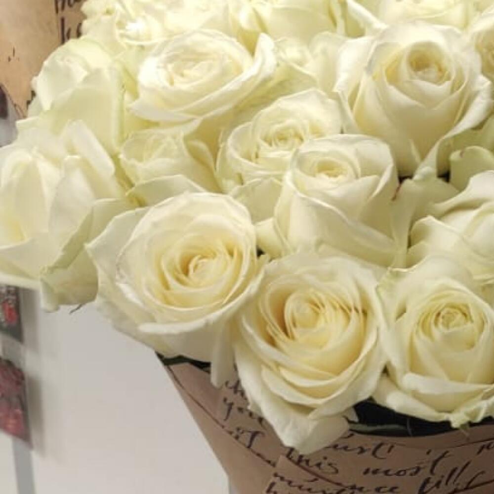 розы эквадор (60 см) – 35 шт.Лента атласная – 1 шт.Упаковка дизайнерская – 1 шт.