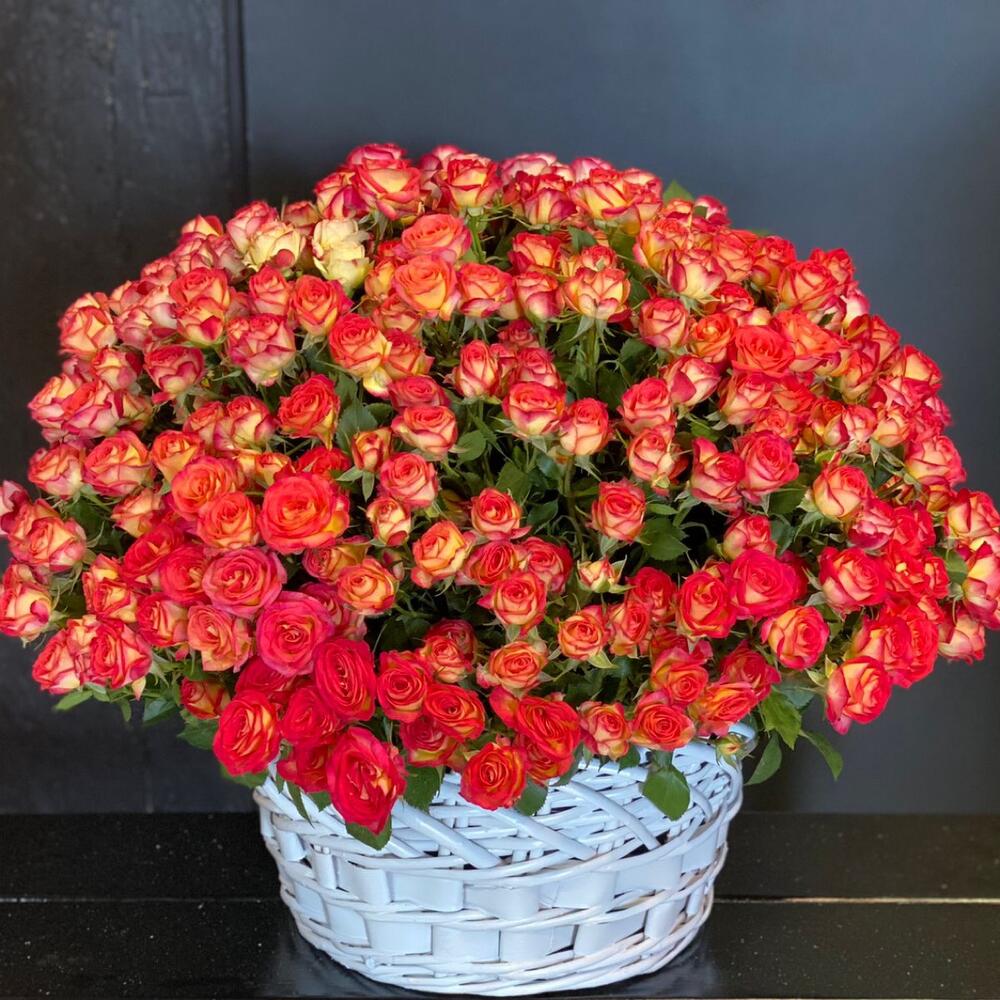 Корзина плетеная – 1 шт.Роза кустовая – 81 шт.
