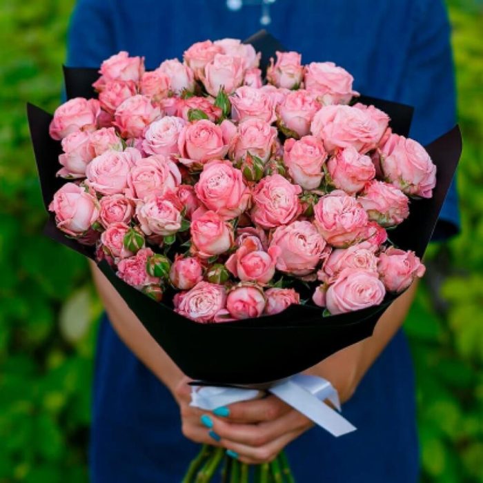 Кустовые розы розовые