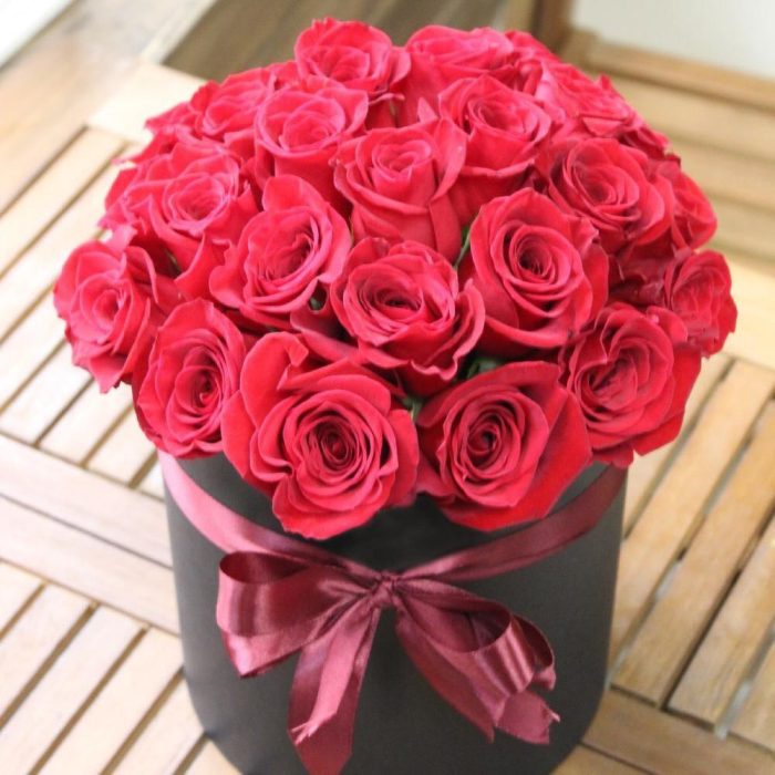 Коробка из красных роз