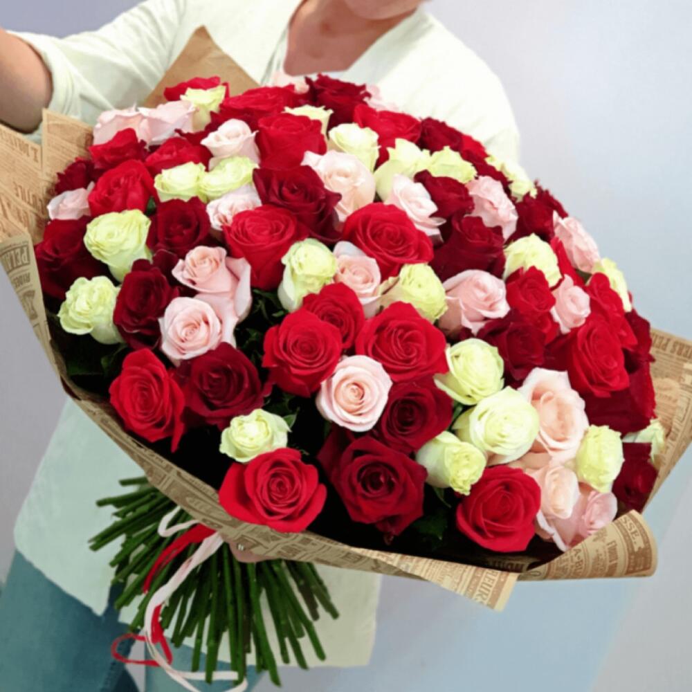 Роза 50 см – 101 шт.упаковка крафт-бумага – 1 шт.