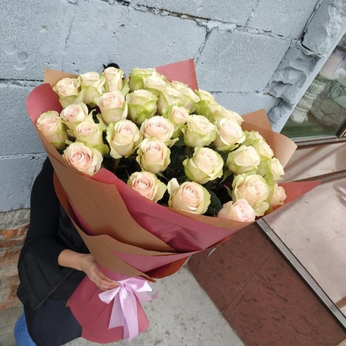 Роза Эквадор – 35 шт.Лента атласная – 1 шт.Упаковка дизайнерская – 1 шт.