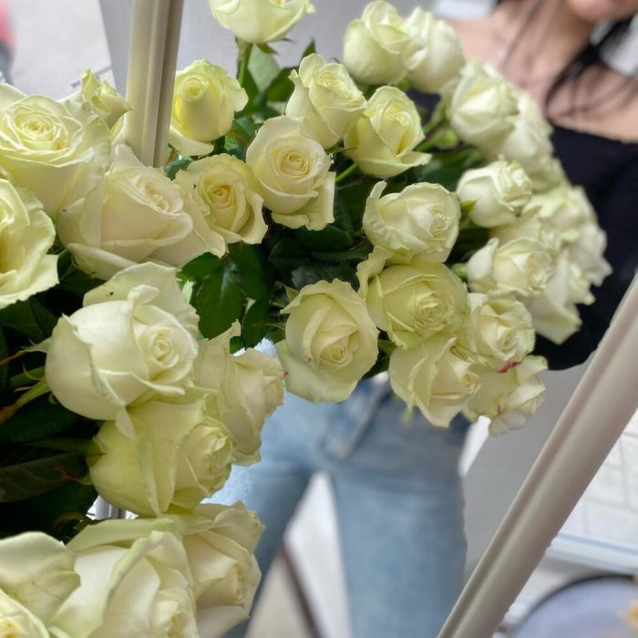 Букет белых роз 25 штук 60 см