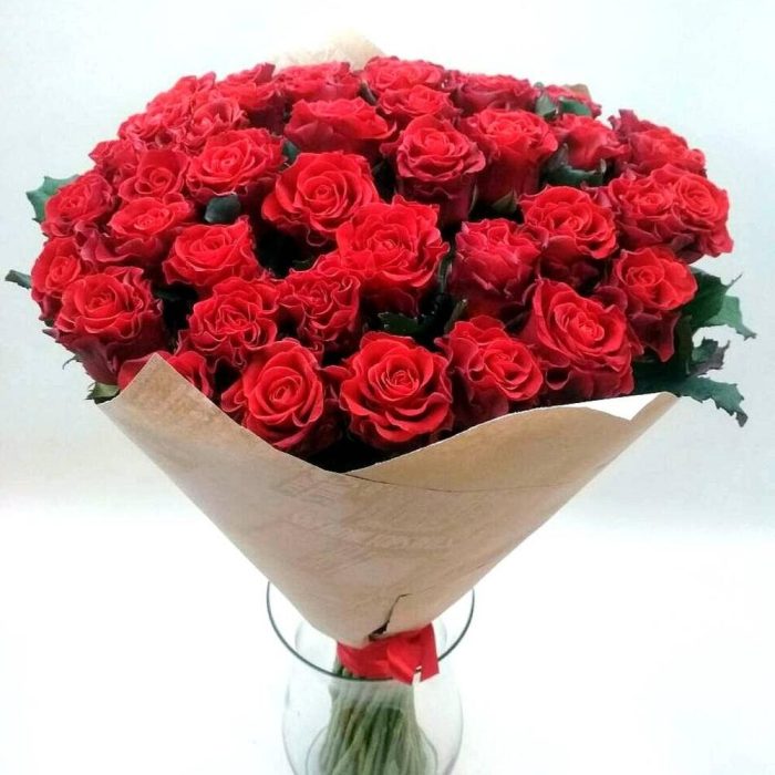 роза украинская сорта эль торо – 45 шт. оформление крафт бумага – 1 шт.